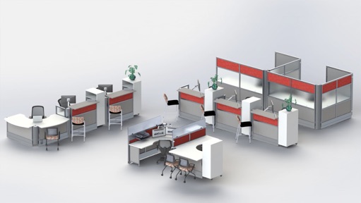 Unique patented folding / movable workstation with all interior components attached to a lightweight but strong frame mounted on locking swivel casters. No installers or tools needed for set up or reconfiguration. Fits in a passenger elevator making it easy to move and store. Choose from full height, partial wall or no wall units. Options include power and accessories. Custom sizes available.